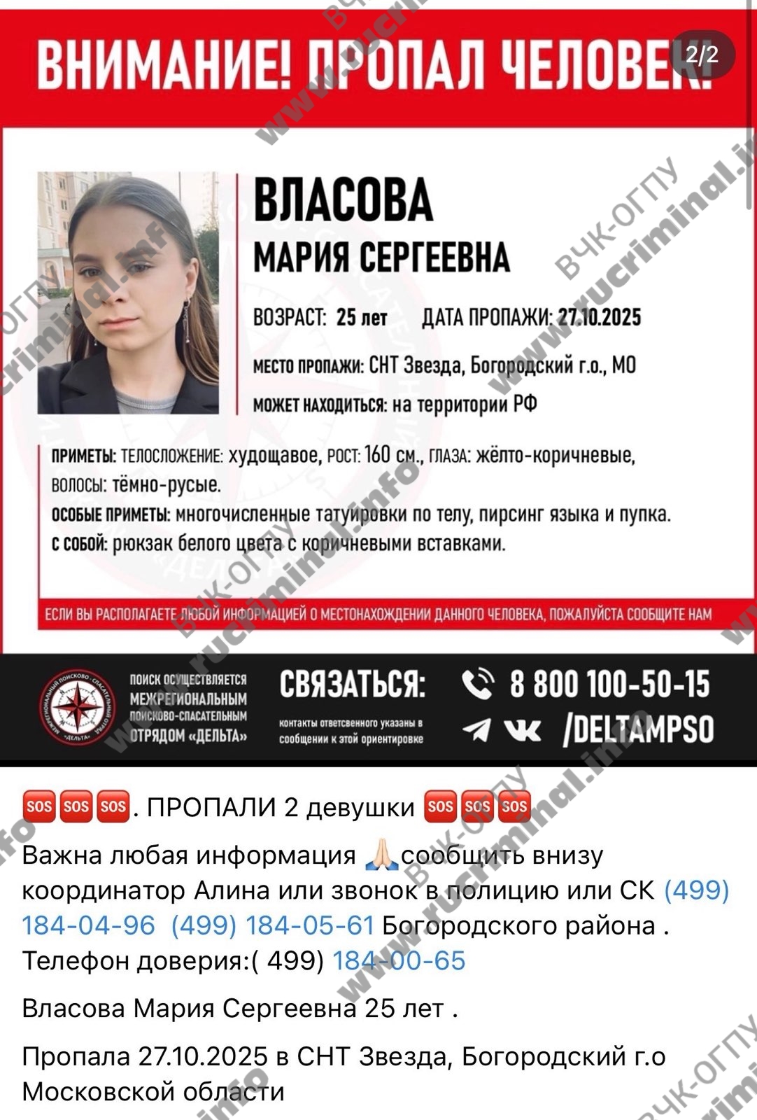Первое заявление в МВД о том, что пропал человек несколько месяцев пылилось в полиции. Ещё летом мать одной из жертв подала заявление о том, что в Богородском районе пропала её дочь. Дальше начался обычная для МВД РФ волокита и переброска неудобного заявление на «чужие плечи». Заявление был направлено из Электроуглей в Королёв по месту жительства пропавшей, а там его просто отправили в «долгий ящик».